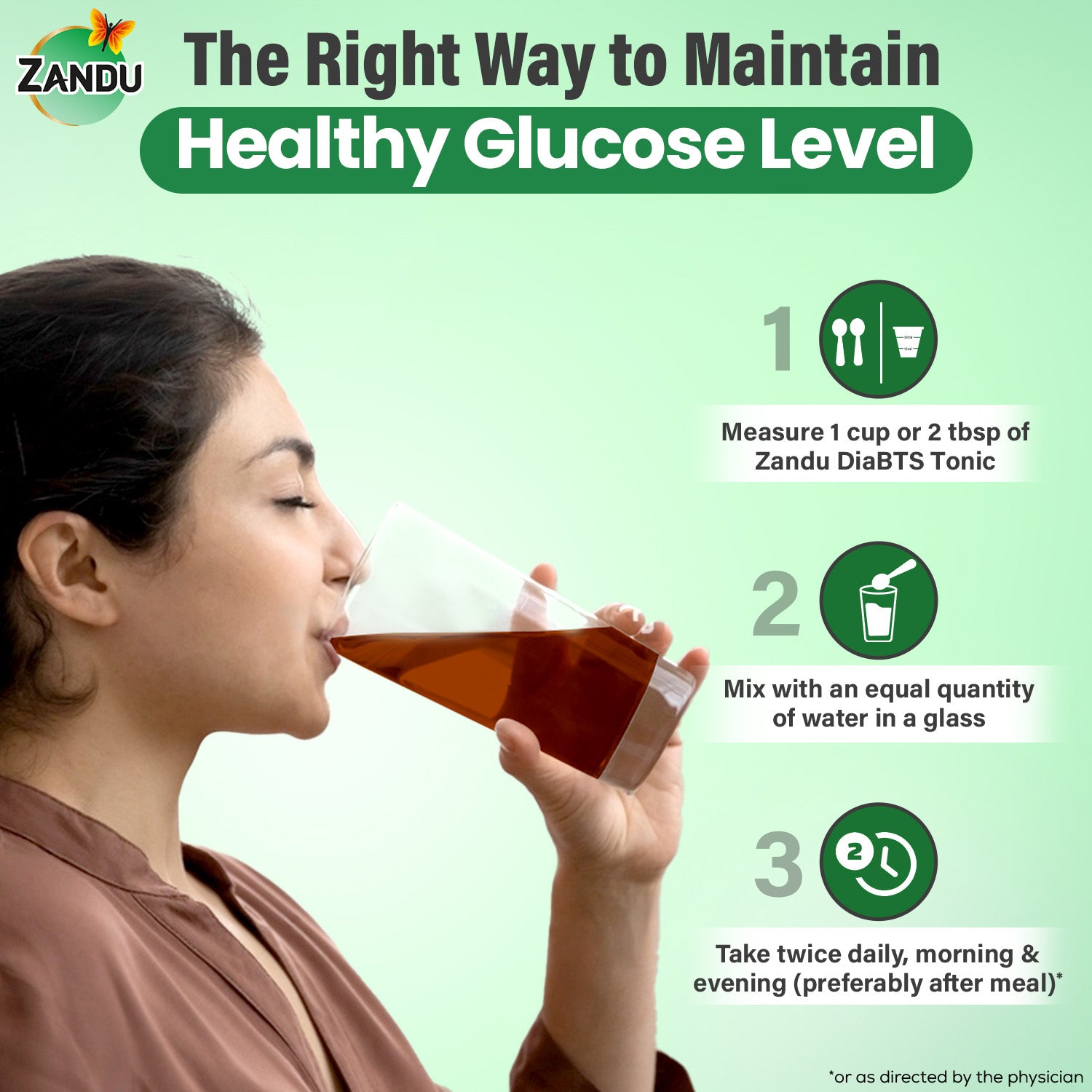 Measure one cup (30 ml) or two tablespoons of the tonic and mix it with an equal quantity of water in a glass. Take it twice daily after meals, or as advised by your physician.