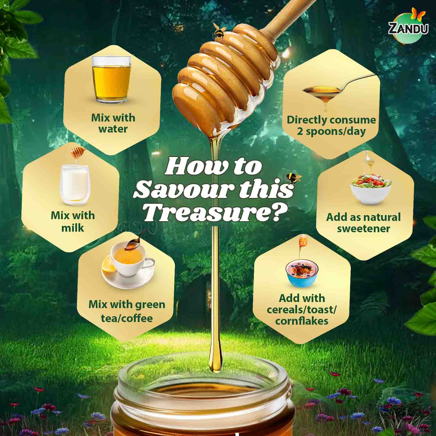 Zandu Pure Honey Sundarban Forest can be consumed anytime. It can be consumed as it is, with milk, water or any of your meals.